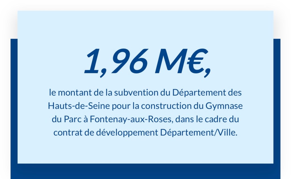 Dans les Hauts-de-Seine, les contrats de développement Département/Ville constituent le principal mécanisme d’attribution des aides départementales. Ce dispositif initié en 2012 par le Département vise à la simplification et à la rationalisation de son cadre d’intervention (règle de non-cumul des financements), à l’affirmation de son rôle de partenaire auprès des communes, à une consolidation budgétaire grâce à des engagements triennaux. Ces contrats concernent aussi bien l’investissement que le fonctionnement. L’objectif du département est de permettre aux communes, et en l’espèce à Fontenay-aux-Roses, de développer l’offre d’équipements sportifs.