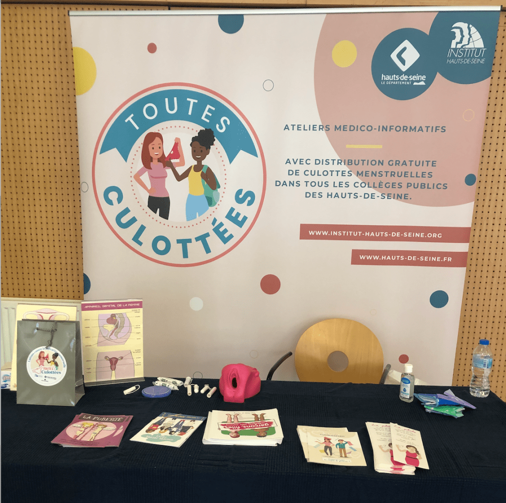 A l’issue de l’atelier – au cours duquel seront notamment abordées les thématiques de l’anatomie, de la puberté, de la contraception et des règles – une culotte menstruelle est distribuée à chaque collégienne, accompagnée d’une brochure médicale explicative. Un questionnaire de satisfaction sera remis aux collégiennes et aux collèges participants.