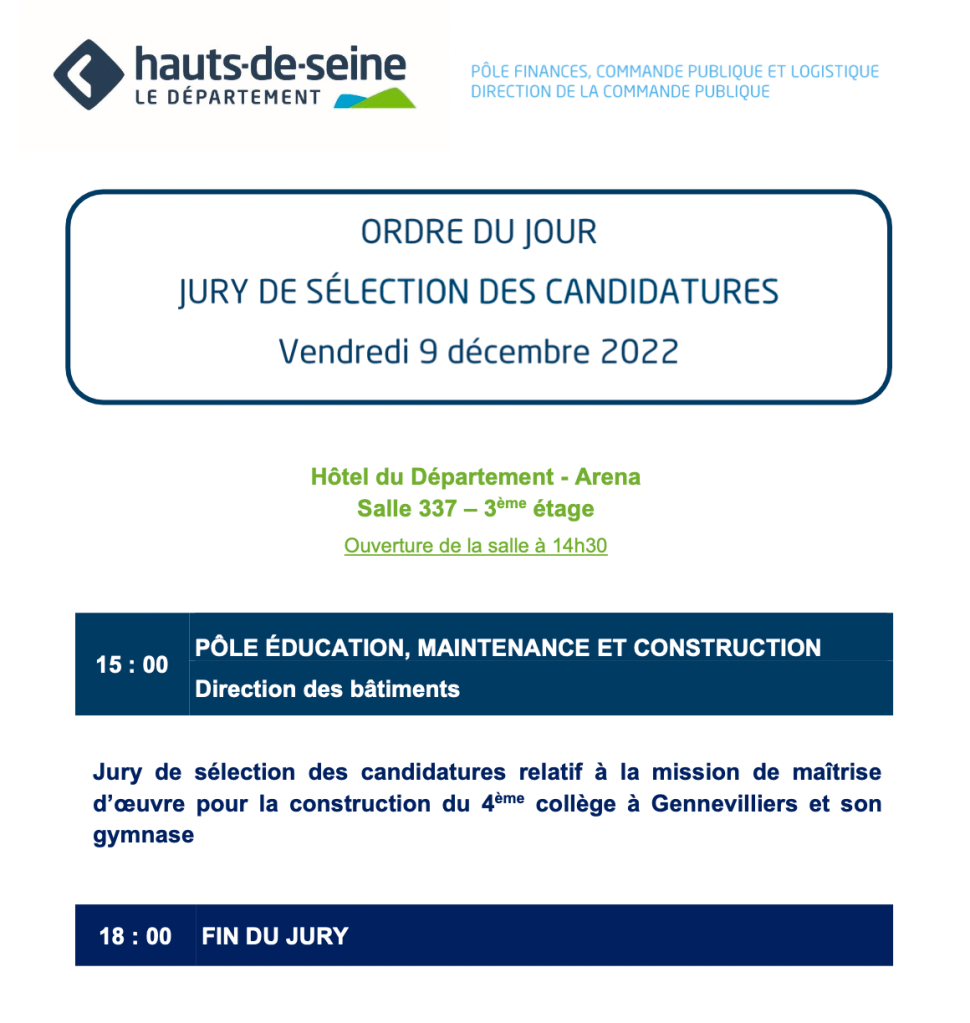Jury de sélection des candidatures relatif à la mission de maitrise d’oeuvre pour la construction du 4ème collège de Gennevillliers