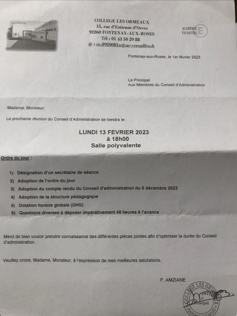 La DHG a été votée en revanche une motion a été déposée par les parents d’élèves contre les effectifs de classe de 3ème et une autre pour dénoncer le manque de moyens pour remplacer l’heure de technologie.