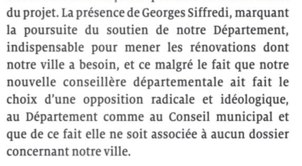 Je rappelle aussi que Laurent Vastel, malgré le rendez-vous à ma demande en aout 2021, afin de pouvoir porter ensemble des dossiers au CD, a toujours refusé de m’associer aux dossiers et l’a d’ailleurs explicitement indiqué dans sa tribune d’octobre 2021 :