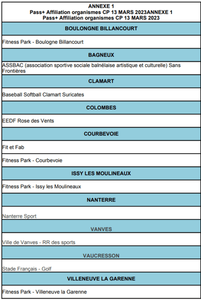 - aux centres de formation agréés du Racing 92 (500 000 €), des Metropolitans 92 (60 000 €) et du Plessis-Robinson Volley-Ball (PRVB) (80 000 €), pour son équipe professionnelle de volley-ball masculine, dite « les Hiboux » ;
