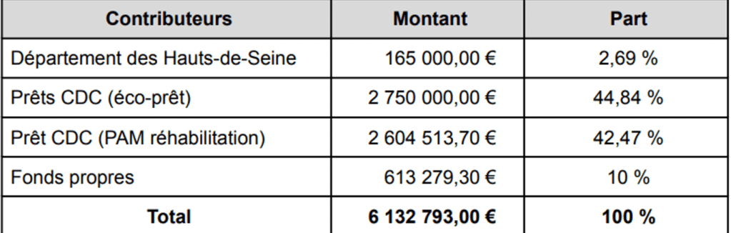 - Colombes Habitat Public a déposé une demande d’aide à hauteur de 165 000 € pour des travaux de réhabilitation thermique, permettant l’amélioration de la performance énergétique de 110 logements sociaux situés au 128, avenue Stalingrad à Colombes. Après travaux, la consommation énergétique de cet ensemble immobilier passerait d’une étiquette D à une étiquette B. Le montant total de cette opération s’élève à 6 132 793 € TTC. Un dispositif peu mobilisé et à mobiliser !