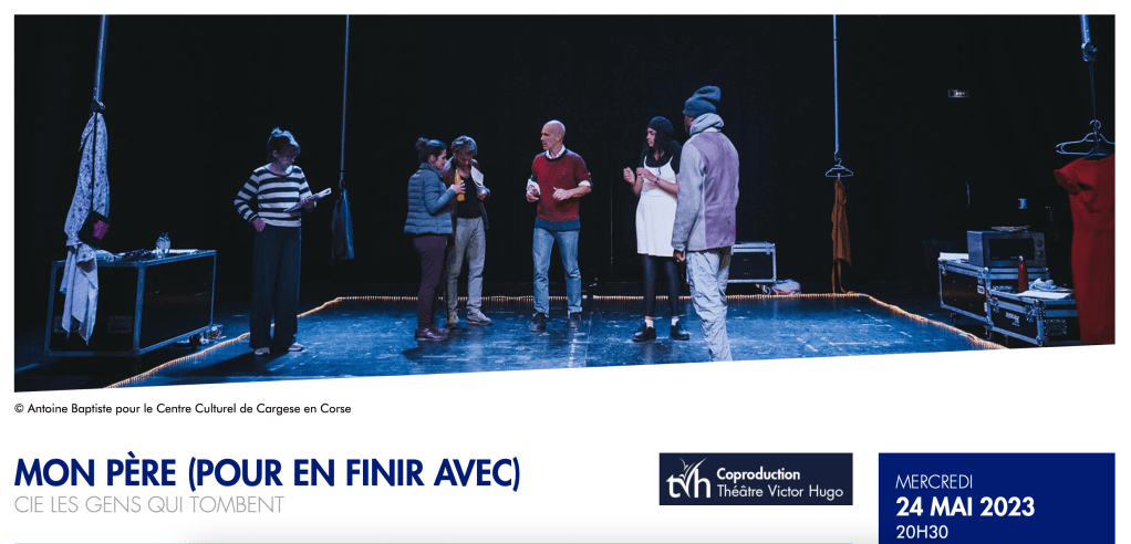 Le 24 mai 2023 : « Mon père (pour en finie avec ») « de Pierre Notte au théâtre de Bagneux, une pièce qui invoque des vivants et des fantômes, et se concentre sur la figure du père.
