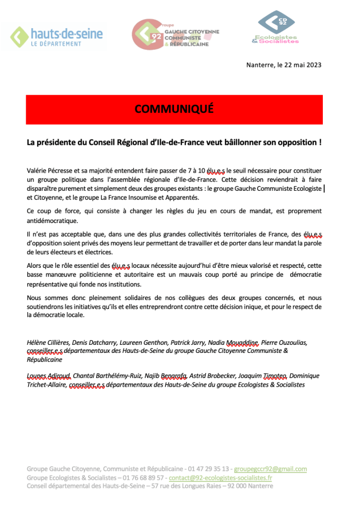 Communiqué de presse conjoint par les écologistes et socialistes et la gauche citoyenne, communiste & républicaine Partager : Cliquer pour partager sur X(ouvre dans une nouvelle fenêtre) X Cliquez pour partager sur Facebook(ouvre dans une nouvelle fenêtre) Facebook J’aime chargement… Articles similaires