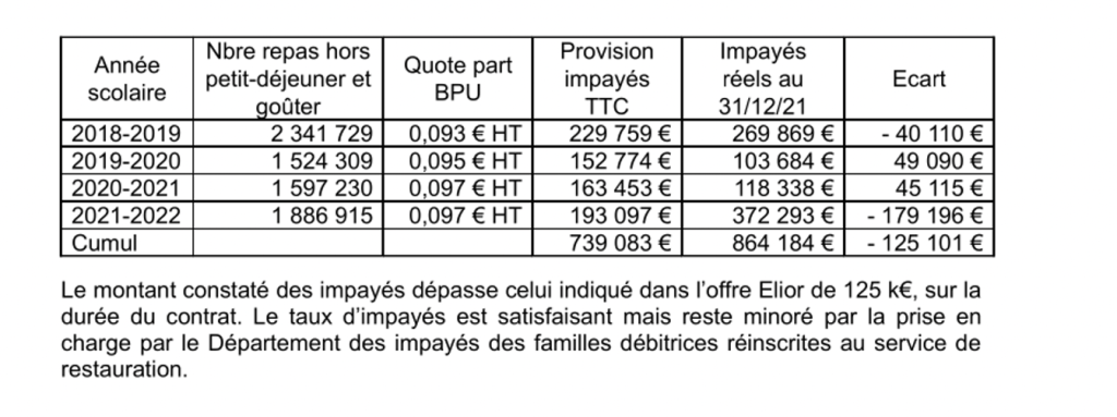 - 2021-2022 (ce rapport – qui aurait dû vous être soumis en 2023) : 58,20 % (cette fois-ci la baisse est expliquée par les conséquence encore visibles de la crise sanitaire, “les nouvelles habitudes des familles” et l’inflation, même si les tarifs n’ont pas augmenté depuis 2016).