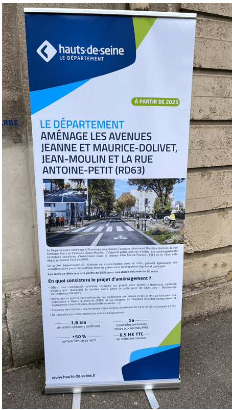 - D’Offrir 1,6 km de continuité cyclable, intégrée au projet plus global d’itinéraire cyclable structurant, doublant la coulée verte entre le pôle gare de Châtillon – Montrouge et Châtenay-Malabry