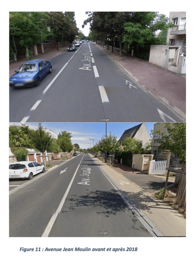 Dès le début, nous nous sommes aperçus que l’avenue Jean Moulin était hors périmètre. Or, en 2018, 25 nouvelles places de stationnement ont été́ ajoutées à la place d’un couloir de bus, comme le montrent ces images :la place d’un couloir de bus, comme le montrent ces images :