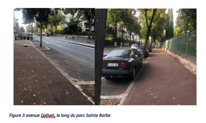 Le stationnement à supprimer a été créé en 2018 à la place d’un couloir de bus, donc une perte absorbable. L’argument du stationnement, qui empêcherait la création d’une piste cyclable est à nuancer, car il n’est pas une fatalité mais une conséquence de la politique du stationnement gratuit à Fontenay-aux-Roses (avec quelques zones bleue ou verte).