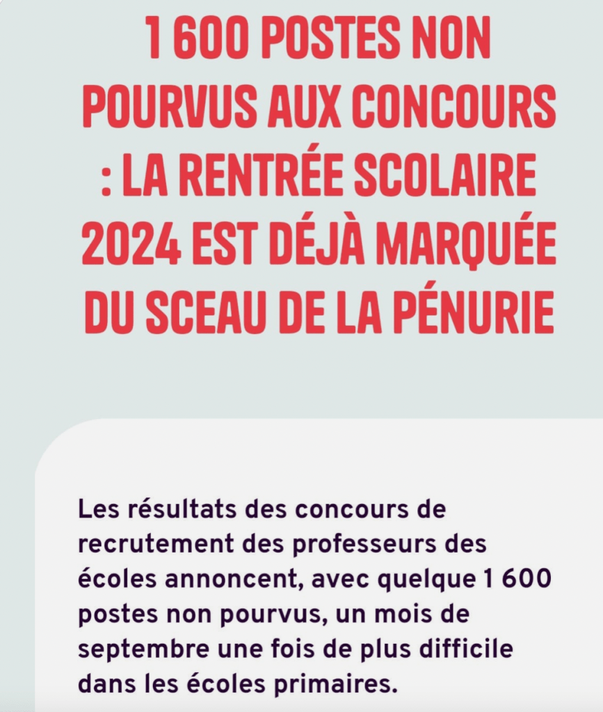 Vite le nouveau front populaire pour redonner des moyens à l’éducation nationale, et revaloriser les enseignants, professeurs !