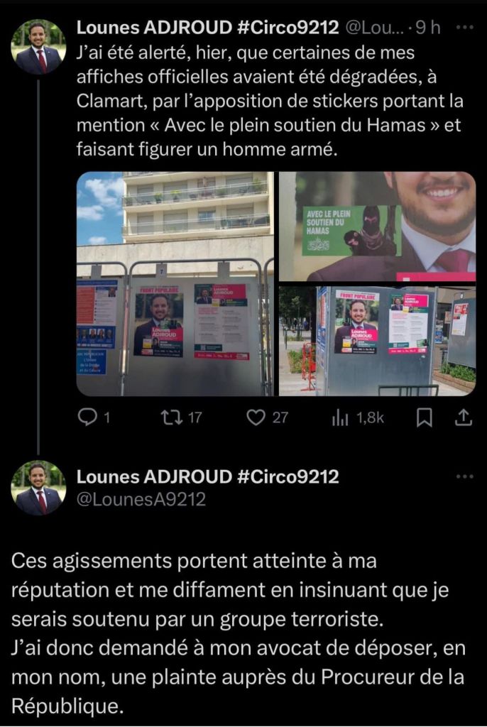 Campagne nauséabonde sur le papier et sur le terrain parfois dans notre circonscription. Total soutien à Lounes Adjroud .