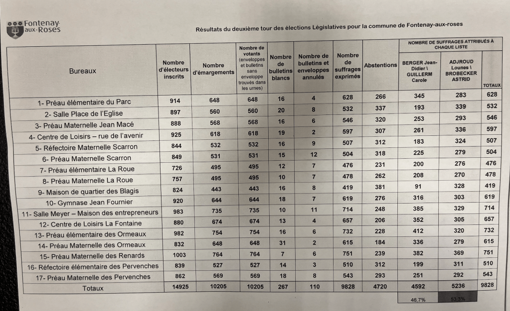 Nous remercions les fontenaisiennes et les fontenaisiens qui nous ont placé est en tête avec plus de 53,3% des voix. Il en est de même à Châtillon.