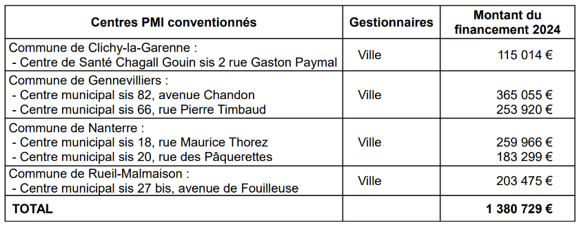 Il s’agit du renouvellement au titre de l’année 2024, du soutien financier apporté par le Département aux 6 centres de PMI (sur 42 au total) et aux 15 CSS (sur 26 au total) conventionnés.