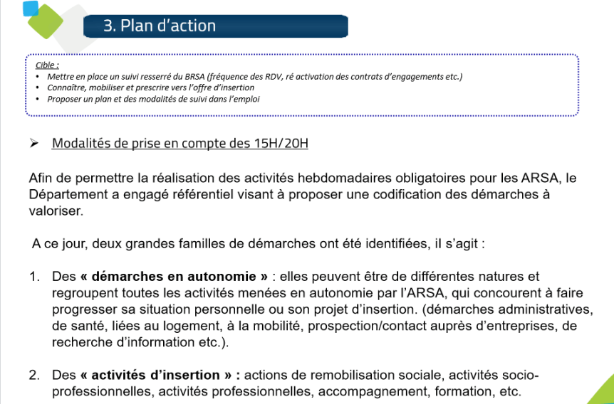 Le deuxième volet, financé à parité par le Département et l’Etat, se donne pour ambition le renforcement de l’offre d’insertion, dans une logique de complémentarité avec les solutions déjà existantes portées par le Département au titre du Plan départemental d’insertion (PDI). Il s’agit d’alimenter l’éventail de solutions mobilisables visant à assurer des parcours d’insertion intensifs aux allocataires du RSA.