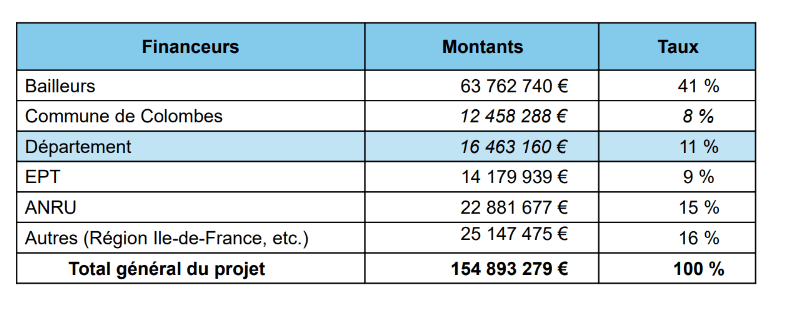 Soutien du département de 16 463 160 € pour un coût prévisionnel global de 153 893 279 €.