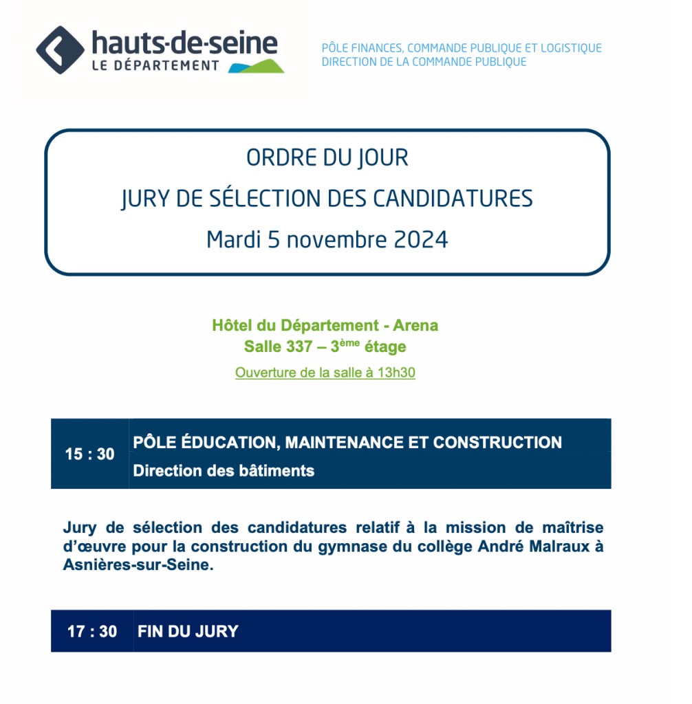 Jury pour la construction du gymnase du collège André Malraux à Asnières Partager : Cliquer pour partager sur X(ouvre dans une nouvelle fenêtre) X Cliquez pour partager sur Facebook(ouvre dans une nouvelle fenêtre) Facebook J’aime chargement… Articles similaires