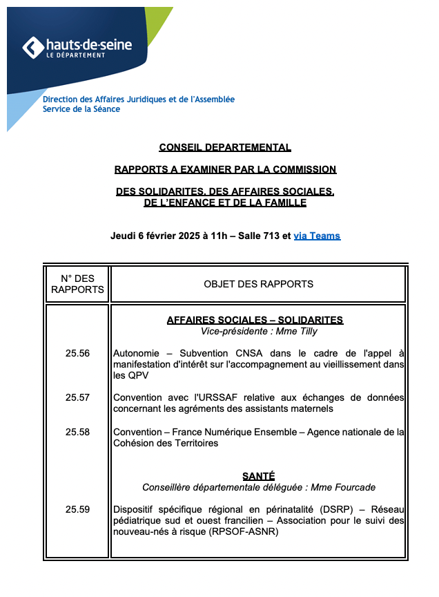 CD 92 – Commission solidarité du jeudi 6 février 2025 : ordre du jour Partager : Cliquer pour partager sur X(ouvre dans une nouvelle fenêtre) X Cliquez pour partager sur Facebook(ouvre dans une nouvelle fenêtre) Facebook J’aime chargement… Articles similaires