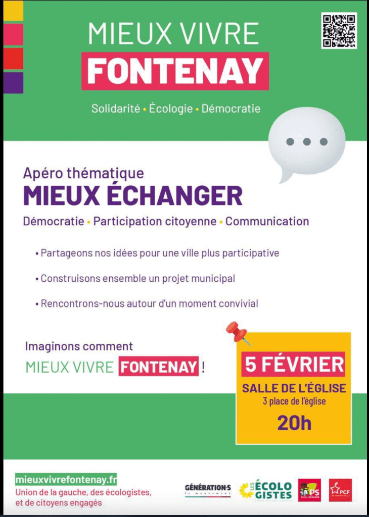 Atelier sur la démocratie participative, mercredi 5 février 20h00 salle de l’église Partager : Cliquer pour partager sur X(ouvre dans une nouvelle fenêtre) X Cliquez pour partager sur Facebook(ouvre dans une nouvelle fenêtre) Facebook J’aime chargement… Articles similaires