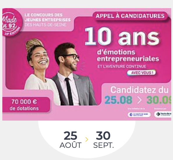 Du 25 août au 30 septembre 2025, toutes les jeunes entreprises de moins de 8 ans, implantées dans les Hauts-de-Seine, pourront candidater sur https://madein92.fr